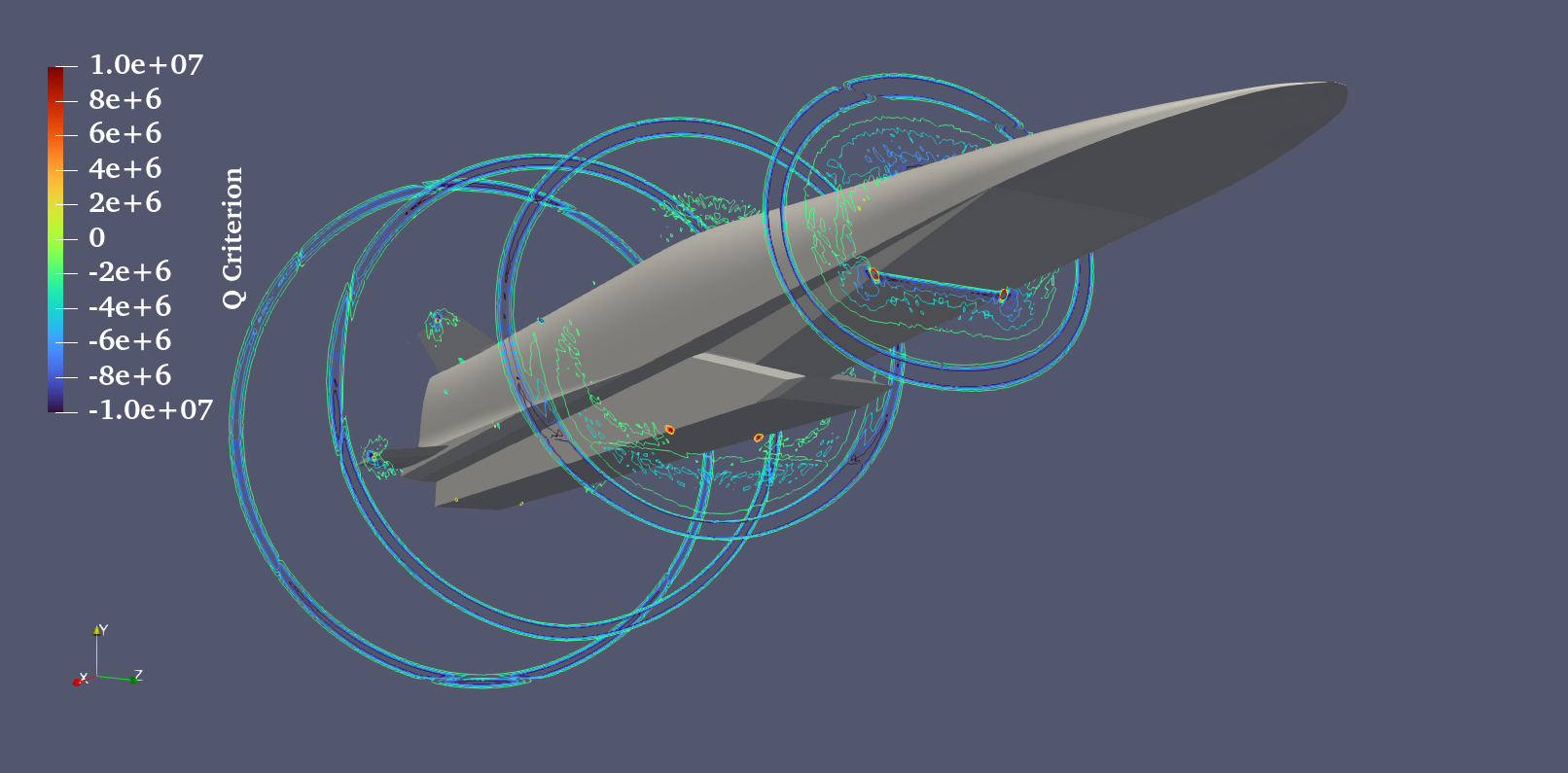 A waverider is a hypersonic vehicle configuration designed in such a way that the shock wave emanating from the vehicle itself stays attached to the vehicle’s leading edge, providing several benefits[1]: (a) the shock separates the flow filed on the upper surface from the flow field on the lower surface of the vehicle, therefore no spillage of high-pressure flow takes place from the lower to the upper surface at the tip; (b) the uniform flow on the lower surface is ideal for entering a scramjet engine; (c) the geometry configuration of the waverider can be achieved through an inverse design methodology from a known flow filed around a conical geometry. Such a methodology will be used in the following sections of this work.